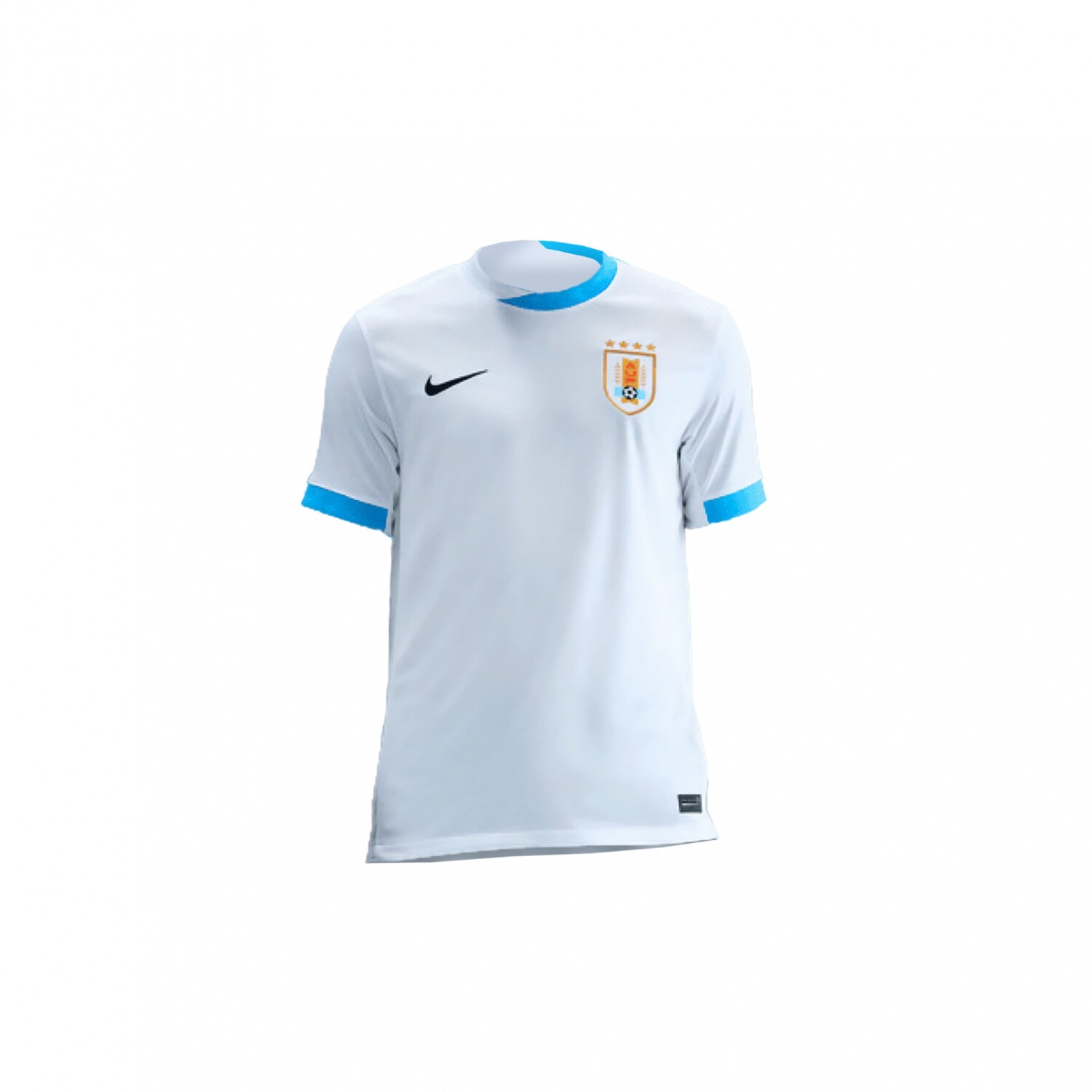 La camiseta visitante de Uruguay 2025 presenta un diseño blanco sobrio con detalles celestes en cuello y mangas, reflejando la elegancia y el temple celeste más allá de nuestras fronteras.